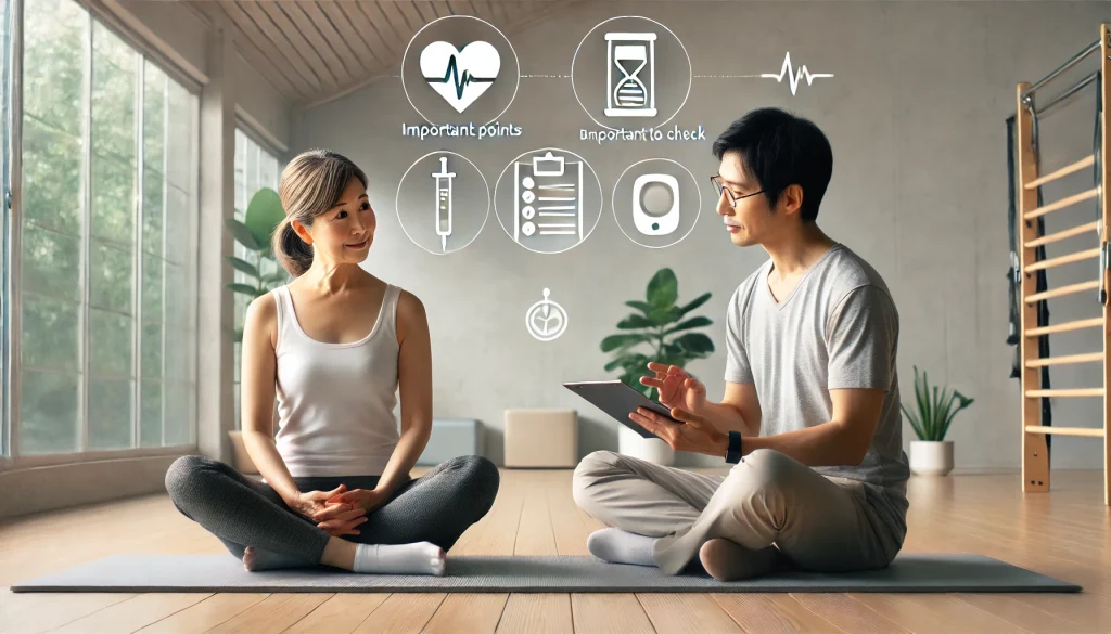 特に「フォームが正しいか不安」「血糖値が高めで自己流が怖い」という方は、専門家の指導を受けることで安心して継続できます。